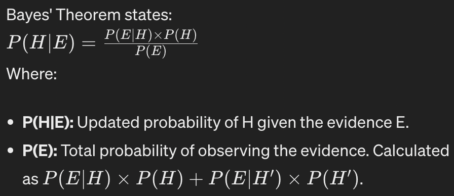 • “Bayes’ Theorem is a mathematical formula used to update the probability estimate for a hypothesis as additional evidence is acquired.”