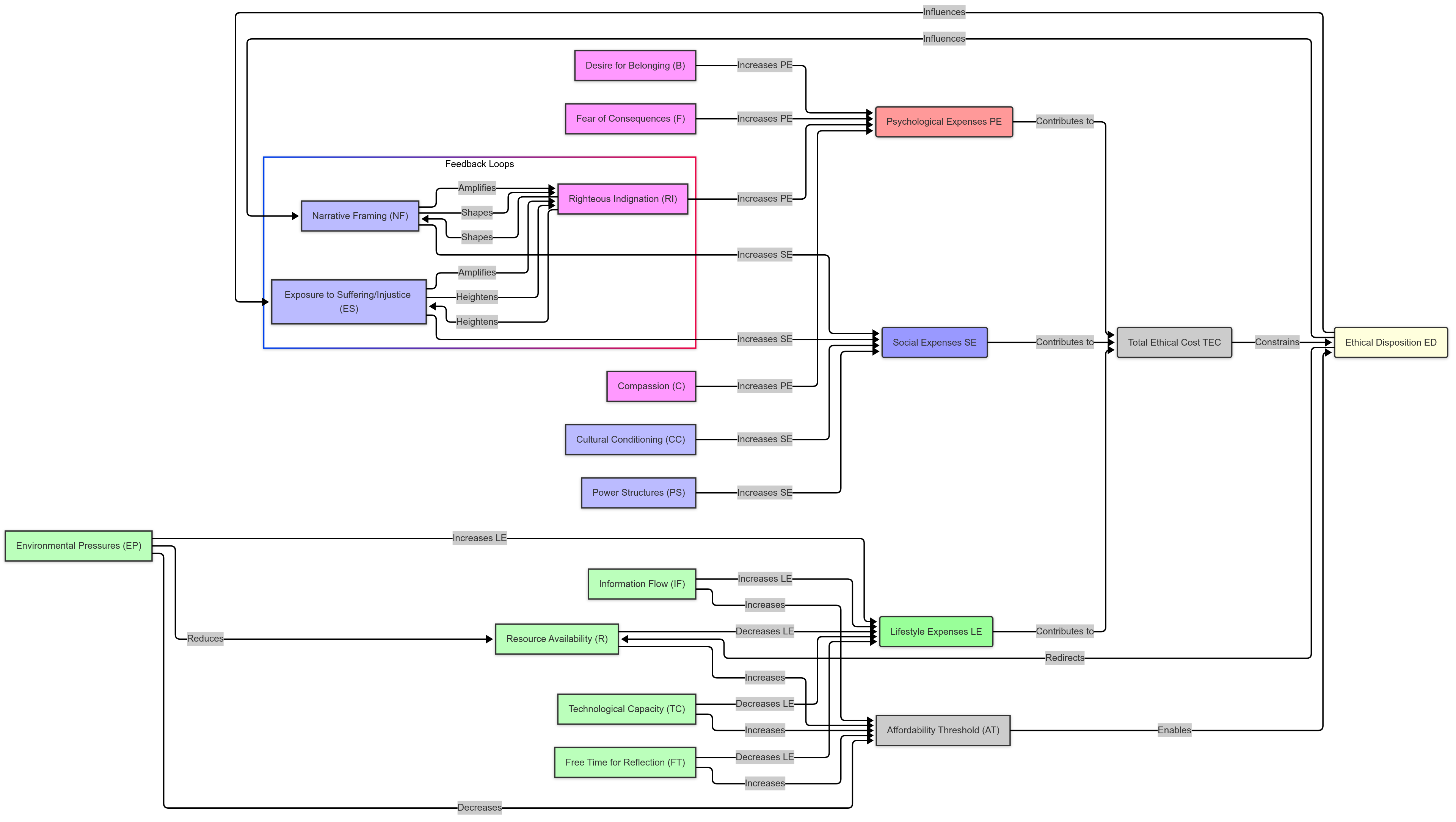 Ethical Disposition (ED) emerges from the interplay of these factors. We’ll assume: